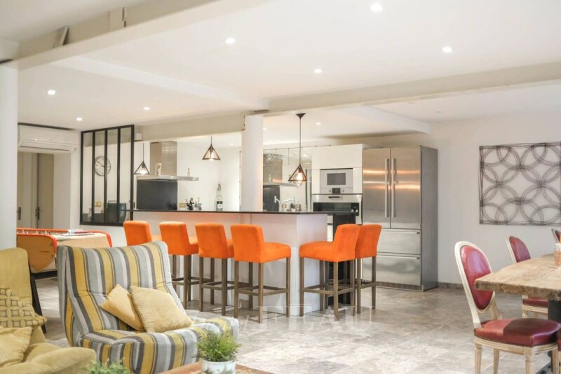 This entirely renovated apartment offering 180 sqm of living space as defined by the Carrez Law is located near the shops and transport networks. Benefiting from a peaceful near 200 sqm garden hidden from view, it includes a 75 sqm living/reception room with an open-plan kitchen opening onto the garden, a suite, two bedrooms sharing a bathroom, a utility room and a workshop. A second suite featuring high ceilings is upstairs. The leafy level garden benefits from a heated swimming pool, a terrace and a boules pitch. With four parking spaces. État des risques et pollution: réalisé (2024-12-12).