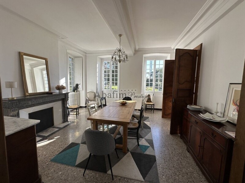 Located 20 mins west of Pau is this elegant chateau with pool for sale offering 350m² of entirely renovated space including five bedrooms, a study, outbuildings, horse boxes and a magnificent view of the Pyrenean mountain range. There are 12000m² of grounds including gardens and pasture.This quality property has been perfectly maintained.A 27m² vestibule serves the 23m² dining room with 12m² fitted kitchen. To the left, there is a 29m² sitting room, a study and a 26m² bedroom.Upstairs, there are five bedrooms (10m², 13m², 18m², 21m² et 27m²) with bathroom and shower. A 100m² loft is insulated and may be easily transformed to extra living space.The second floor has the possibility to create two or three extra rooms. You will also appreciate another bedroom to renovate on this floor which has a south-west facing balcony and a pigeon house.A 125m² space at the garden level of the property completes the interior. It has diverse storage rooms and adds to the functionality of the property.Outside and in immediate proximity is a 250m² barn in prefect condition with boxes for horses.You will adore gazing at the view of the Pyrenees from the private terrace with pool.This property is perfect for operating a gite or chambre d'hôtes activity. The receptions rooms are ideal for private events or business meetings.The ensemble has double glazing. Heating is assured by a heat pump system. The property is connected to the sewage mains.You will be 5 mins from all commerce and services. 20 mins from the city centre of Pau, 45 mins from Biarritz and from the Spanish border.