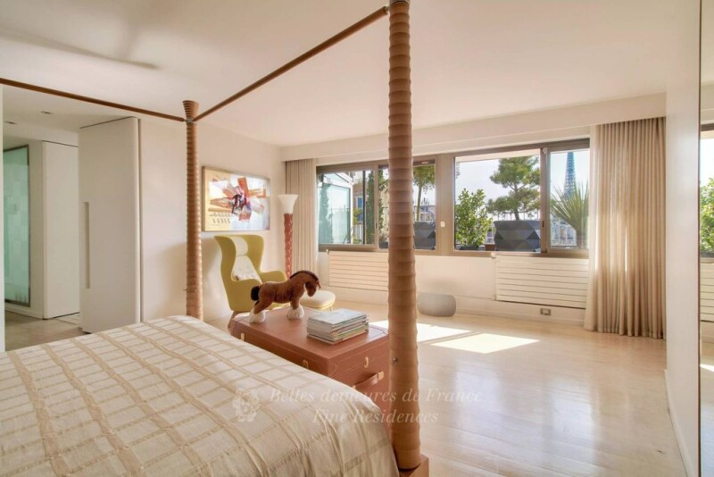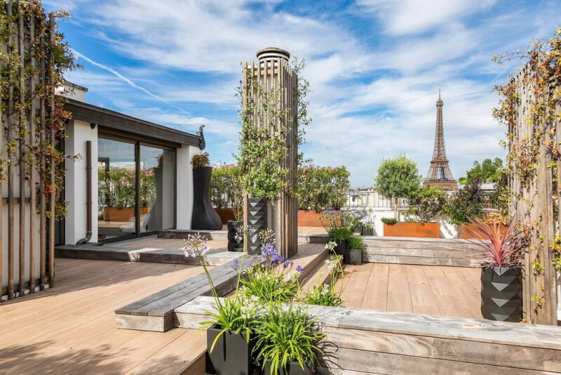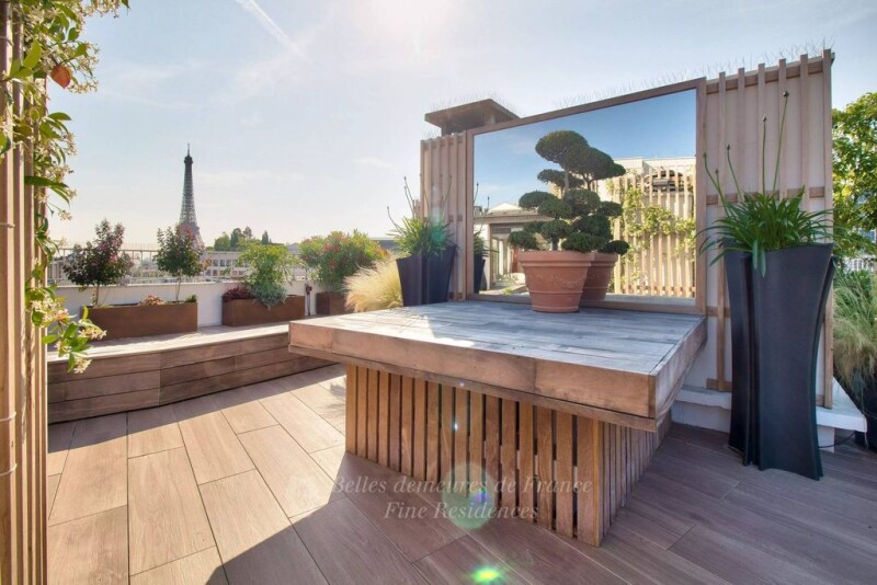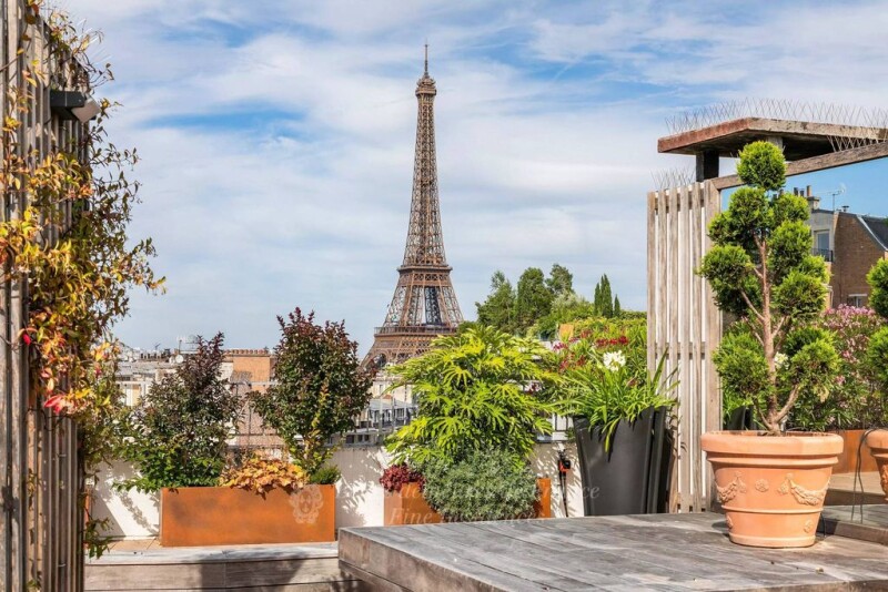 This near 300 sqm penthouse apartment is on the top floor of a relatively recent building located a five-minute walk from rue de Passy. Benefiting from a magnificent near 400 sqm terrace commanding a view of the Eiffel Tower and the Seine, it includes a dual-aspect double living/reception room, and two spacious suites with bathrooms and dressing rooms. It would be possible to create up to four bedrooms. With a self-contained studio apartment, a parking space and two cellars.