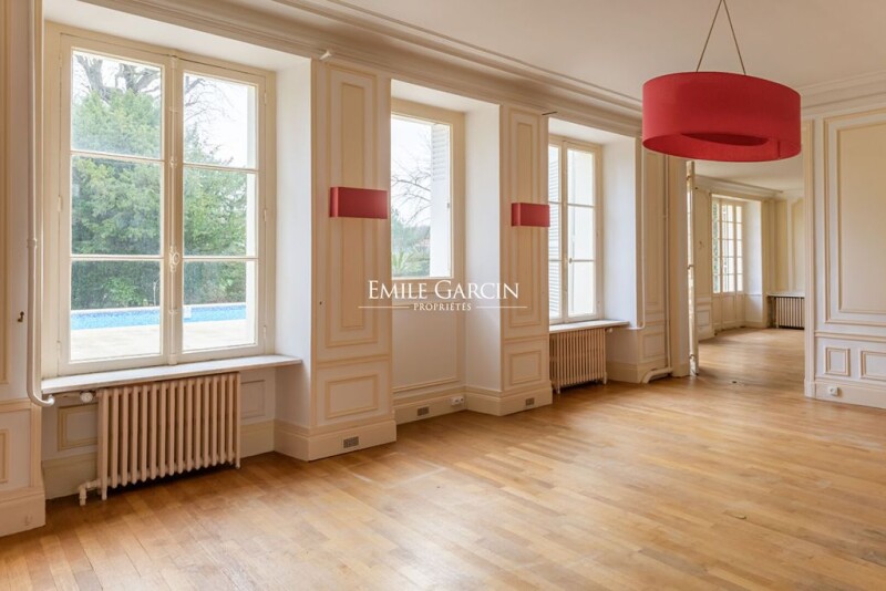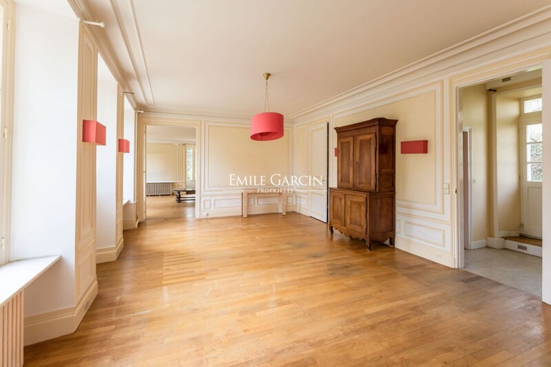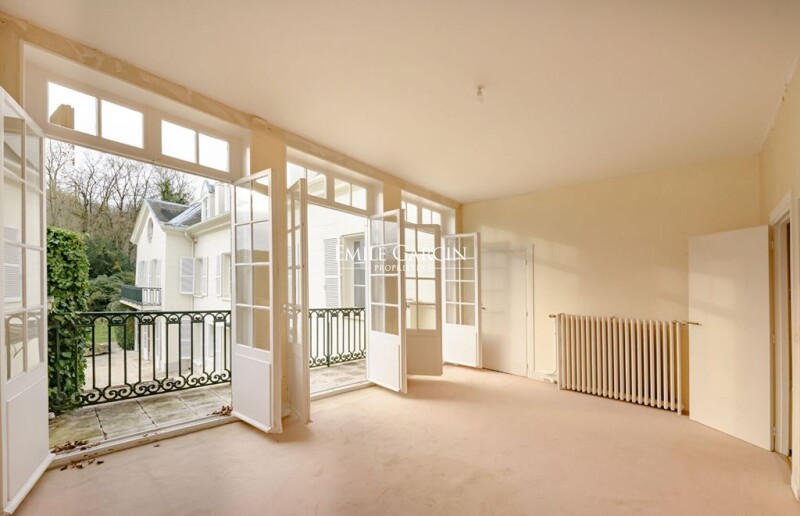 Magnificent 19th-century mansion presenting 600 sq.m of living area in Louveciennes, near Paris, La Défense, Saint-Germain-en-Laye and Versailles. Sitting on 4,537 sq.m of south-facing landscaped grounds, this charming property consists of a main house, outbuildings, a garage and a large swimming pool. Spread over three levels, the main house is composed as follows: Ground floor - a large entrance gallery, a large living room with fireplace, a dining room adjoining a family kitchen, a library, an office, a games room backing onto the garden, a WC, an oil-fired boiler room, a laundry room and a cellar; First floor - five large bedrooms with bathrooms and storage space; Second floor - four bedrooms, three bathrooms, WC. Two staircases, including a main staircase, serve the upper floors. The house also has a beautiful vaulted cellar and adjoining spaces. An annexed outbuilding, with independent entrance, comprises a living room, a dining room/kitchen, three bedrooms, a bathroom, a shower room and two WCs. There is an additional small outbuilding in the garden. The outdoor areas are also equipped with a garage, a shower, a toilet, a pool house and another small outbuilding. Nestled high up and not overlooked, the property benefits from quiet unspoiled surroundings and boasts an unobstructed view of its magnificent landscaped grounds. The property is accessed through a stone gate, with a driveway leading to the beautiful architectural ensemble. This charming residence, ideal for a large Parisian or expat family, is in need of renovation works to realise its full potential.