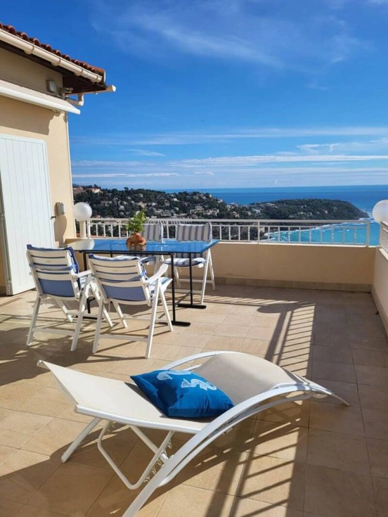 Near Monaco, superb 2 bedroom sea view apartment located in a prized secure residence with swimming pool. 2 bedroom with large terrace and garden planted with fruit trees. Magnificent panoramic sea view, superb living room, fitted kitchen, two bedrooms with en suite bathrooms. Terrace with summer kitchen, barbecue and Jacuzzi, perfect for enjoying the Mediterranean warm weather. Two parking spaces complete this property.