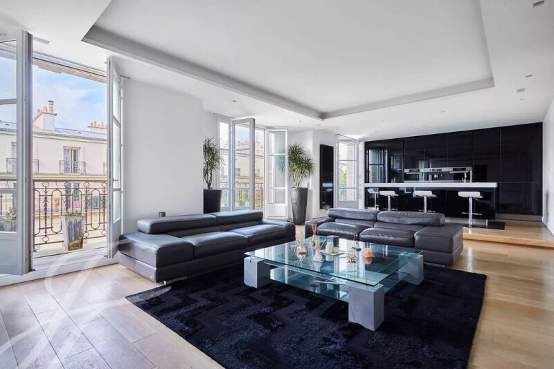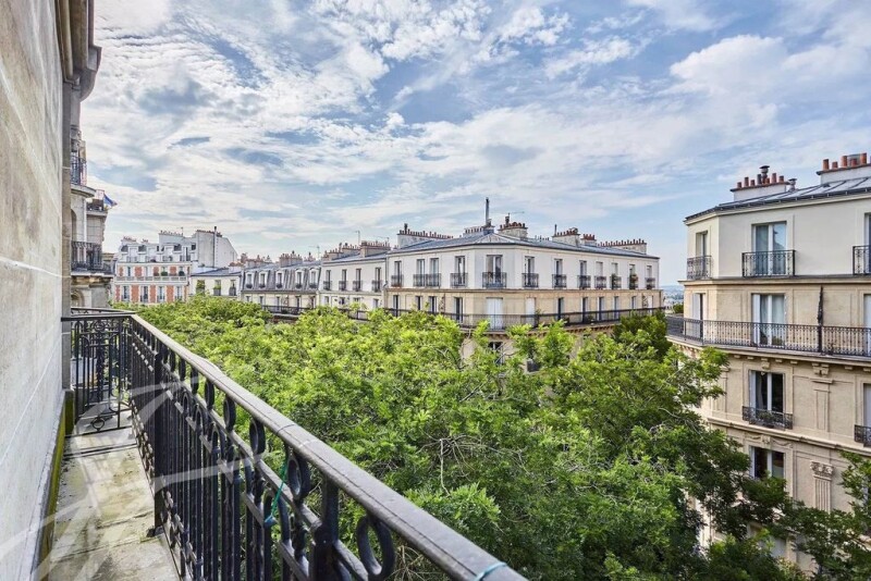 In the heart of Montmartre and its village life, nestled above the trees, on the 5th floor with elevator of a beautiful corner early 20th-century building building with a caretaker, we offer you this superb 111.51m² apartment surrounded by 10m² of wraparound balconies. In excellent condition, it is composed as follows: - An entrance - A spacious living room with an open kitchen, 3 large windows, and a wraparound balcony - A courtyard-facing suite with a bathroom and walk-in shower - A street-facing suite with a hammam, shower, and balcony - 2 separate toilets Luxury fully equipped kitchen, fireplace, integrated home cinema system, sound system throughout the apartment, soundproofing Floors and Ceilings, electric shutters, blinds, and curtains, numerous storage spaces. Its location, views, outdoor spaces, volume, layout, and high-end features make it an exceptional property. A cellar completes this property.