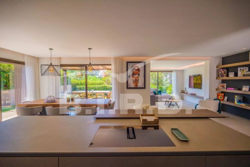Located in a residential area, beautiful new and modern villa offers high-end services. The villa includes a large living room with an open, equipped and fitted kitchen, a utility room, 4 bedrooms each with its own shower room or bathroom, large terraces. The pool house with a summer kitchen, heated swimming pool, an electric gate, a dressing room, a gym room complete this exceptional property.