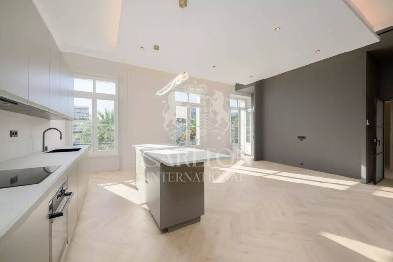 Discover this exceptional property in the heart of Cannes city center. Ideally located just a few minutes' walk from Rue d’Antibes and the beaches of La Croisette, this 4-room, 103m² apartment, fully renovated by an architect, combines old-world charm and modernity within a beautiful late 19th-century bourgeois building with an elevator. From the moment you enter, you'll be captivated by its generous spaces, high ceilings, and abundant natural light, enhanced by its south-facing exposure. The spacious living room, with its fully equipped open-plan kitchen, opens onto a balcony with an unobstructed view of lush greenery. The apartment also includes an entrance hall with a functional office area, a master bedroom with an ensuite bathroom, two additional bedrooms with built-in storage, an extra shower room, and a guest toilet. For your convenience, a private parking space within the residence and an attic complete this exceptional property. The proximity to all amenities and the Cannes beaches, accessible on foot, as well as nearby schools, main roads, and the train station, perfectly align with the lifestyle offered by this sought-after residence. This apartment perfectly blends comfort and practicality. Optional: A 20m² cellar is also available for purchase. REF 00681 Average energy expenses for 2021: Estimated between €955 and €1,262 per year. Number of lots in the residence: [X to be confirmed]. No ongoing legal proceedings in the residence. Agency fees are payable by the seller. État des risques et pollution: réalisé (2024-10-05).