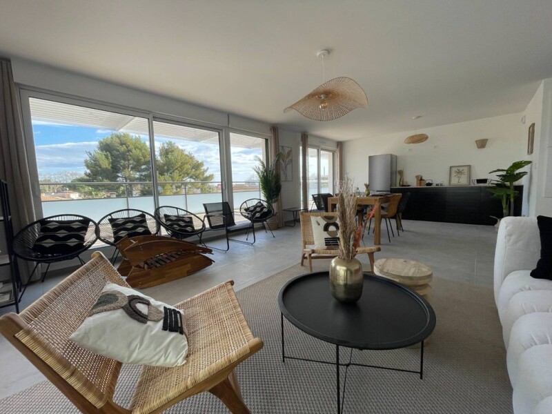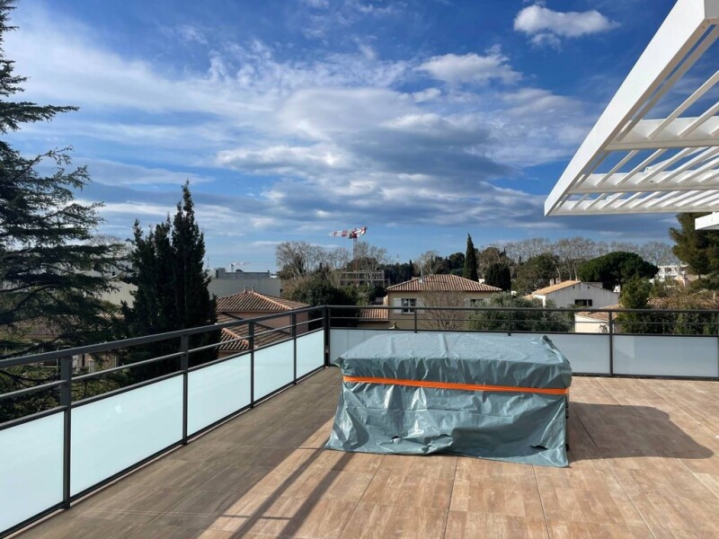 96 m2 roof terrace in an attractive residence of just 28 units. A superb 99 m2 terrace frames all the rooms; facing south and east, it benefits from maximum sunlight... A central entrance leads to the living room with its large bay window and fully glazed wall overlooking the terrace, and to the 3 bedrooms, bathroom and shower room. This apartment has 2 garages, 1 of which is PMR-compliant. Close to all amenities, shops, schools and tramway, and just 5 minutes from the beaches...