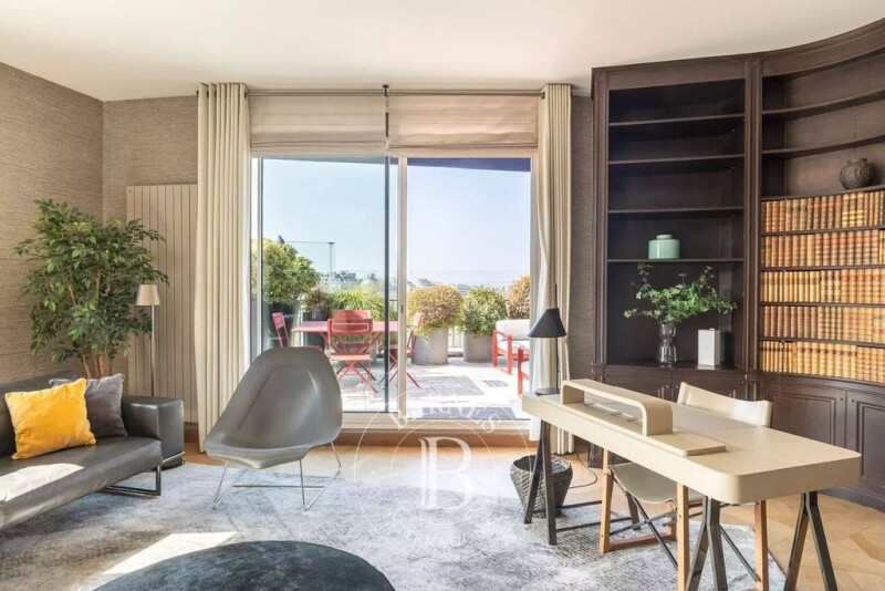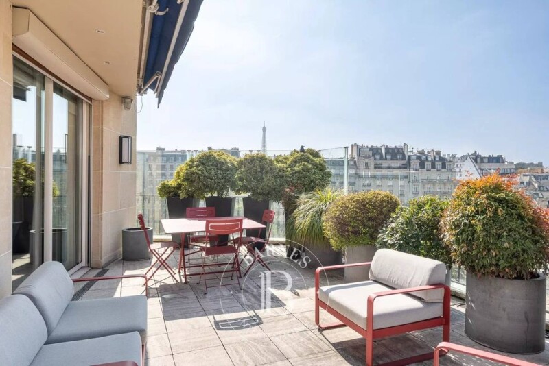 A BARNES Exclusive - Paris 16th: Located on one of the most beautiful avenues in Paris, on the 6th floor, with a south-facing terrace, no overlooking, and in a very high-end, secure building with parking access directly to the apartment. This building, which was the residence of Grace Kelly and Brigitte Bardot in the 1960s, offers a typical Parisian property with views of the Eiffel Tower and the Arc de Triomphe. This characterful apartment with generous volumes spans 330 m², featuring a landscaped terrace and continuous balconies of over 70 m². The property includes an ideal layout with an entrance hall and gallery leading to a spacious double living room opening onto the continuous balcony and the terrace, a dining room opening onto a continuous balcony, a fully equipped eat-in kitchen, a master suite with a bathroom and walk-in closet, opening onto the balcony, four other bedrooms with en-suite bathrooms and balconies. This apartment, which is cross-facing, offers beautiful volumes, exceptional natural light, and a full south-facing exposure. It retains all the charm of the old with wood paneling, moldings, fireplaces, and hardwood floors. The apartment includes air conditioning, security cameras, and an alarm system. A service studio of about 15 m² on the 1st floor, a double garage in the building, and a cellar of almost 34 m² complete this rare property. The property can be sold fully furnished with a listing. Agency fees payable by vendor - Nombre de lots dans la copropriété: 81 - Montant moyen de la quote-part de charges courantes 18,132 €/yearly - Montant estimé des dépenses annuelles d'énergie pour un usage standard, établi à partir des prix de l'énergie de l'année 2021.2022.2023 : 6720€ ~ 9160€ - Les informations sur les risques auxquels ce bien est exposé sont disponibles sur le site Géorisques : www.georisques.gouv.fr - Laure DE LA RIVIERE. - Agent commercial - EI - RSAC 833 069 875 État des risques et pollution: réalisé (null).