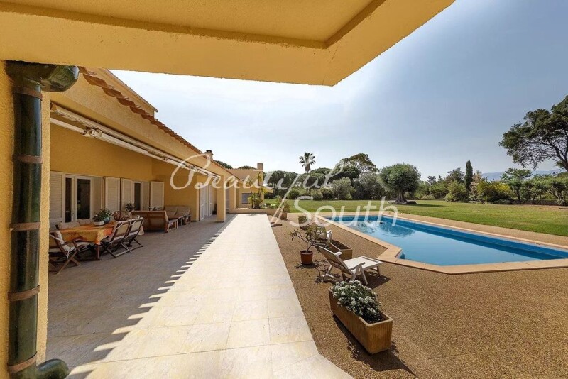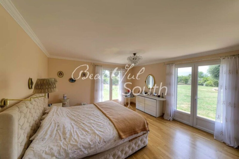 Ideally located, less than 10 minutes from the beaches, exceptional property built on a landscaped and wooded park of 11,595m² with swimming pool. This vast residence totals 430m² of living space. It includes a living room bathed in sunlight of 80m² facing south, giving access to large terraces overlooking the swimming pool, an entrance hall of 45m², a spacious kitchen, a utility room, a dining room, 5 bedrooms including a master suite of 48m² with dressing room, a bathroom, a second suite with adjoining bathroom and dressing room, a shower room, an office, an adjoining independent studio with bedroom, bathroom and kitchenette. The park is beautifully wooded, it is equipped with a swimming pool, a summer kitchen, an outdoor dining area and various terraces. The land is constructible and can be divided into several building plots. A large garage of 48m² and a semi-basement of 60m² with cellars, machinery, storage rooms complete this splendid property.