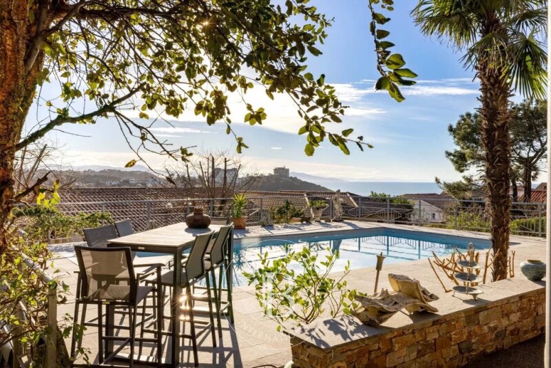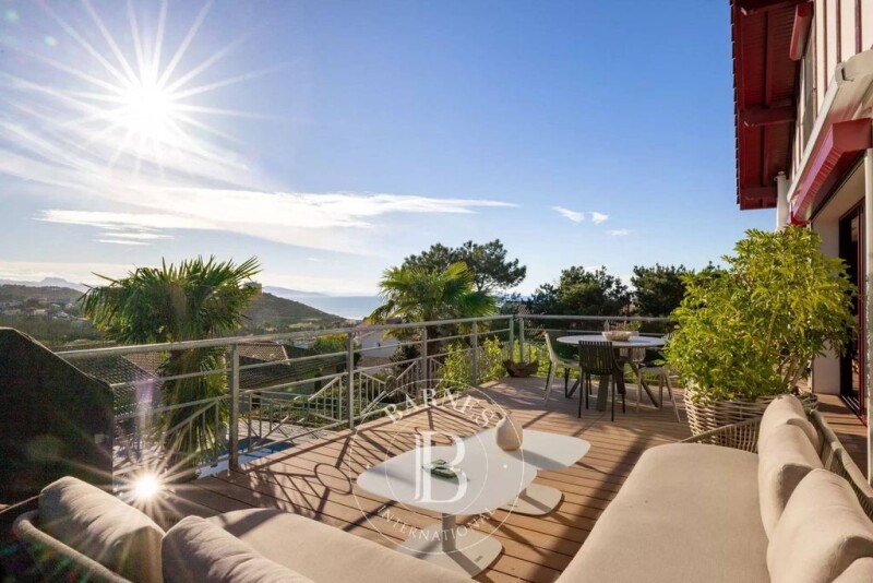 5 minutes from the town center of Biarritz, beautiful house of 230 m² on landscaped garden of 768 m². It features a master bedroom upstairs and 3 bedrooms on the lower level and between the two levels a large living room an open-plan kitchen. It has a heated pool. Large terraces. Garage. Sea and mountain views. État des risques et pollution: en cours (null).