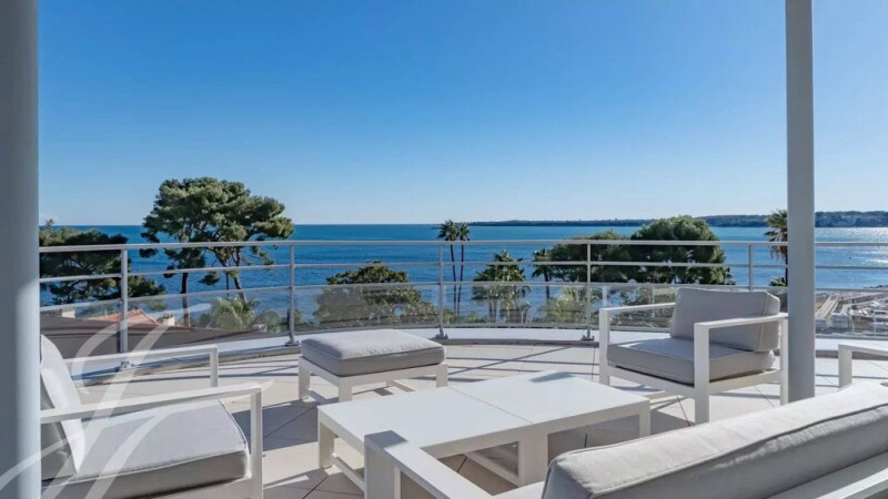 In a small, recent luxury residence with swimming pool, this penthouse boasts 144.33 m² of Loi Carrez living space, a wide, deep terrace of almost 200 m² and a magnificent view of the sea, Sainte-Marguerite island and California. Facing east, south and west, it comprises an entrance hall with direct elevator access, guest toilet, double living room opening onto the terrace with sea view, dining room with open-plan fitted kitchen opening onto the terrace with sea view, master bedroom with en suite shower room and dressing room opening onto the terrace with sea view, bedroom with en suite shower room opening onto the terrace, and bedroom with en suite shower room opening onto a second terrace. A double garage in the first basement completes this property.