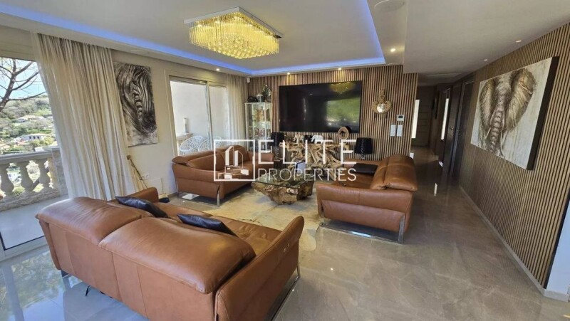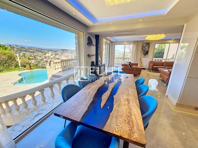 VALLAURIS (near Super Cannes): Detached villa renovated with high-quality materials, offering 10 rooms and 260m² of living space + numerous outbuildings (360m² in total), on a 1610m² plot with an infinity pool, sauna, and gym. It comprises an entrance hall, a living/dining room/equipped kitchen, 3 bedrooms with en-suite bathrooms, and a dressing room. Upstairs: 3 further bedrooms with en-suite bathrooms. On the garden level: a 3-room apartment comprising a living/kitchen, 2 bedrooms with en-suite bathrooms. A garage/gym, a laundry room, a dressing room, and a workshop complete the property. Plenty of parking spaces. Sea view and unobstructed views to the mountains, unoverlooked, and close to all amenities. Amenities: Mains drainage, solar panels (free electricity), underfloor heating with a heat pump system, reversible air conditioning, wood-burning stove, double glazing, fiber optics, and an alarm.