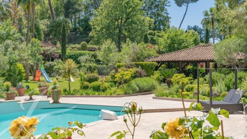 In a quiet, secured and gated Domaine of Mougins, superb property nestled in a landscaped parc of approx. 7,700 sq.m with swimming pool and tennis court. Offering generous volumes of living space, a large kitchen, playroom /TV room, 5 suites including the Master with double dressing room and complete bathroom. A guest house with living room and bedroom, a caretaker's apartment with 2 bedrooms, a pool house and double garage complete this property, to visit at the earliest!.