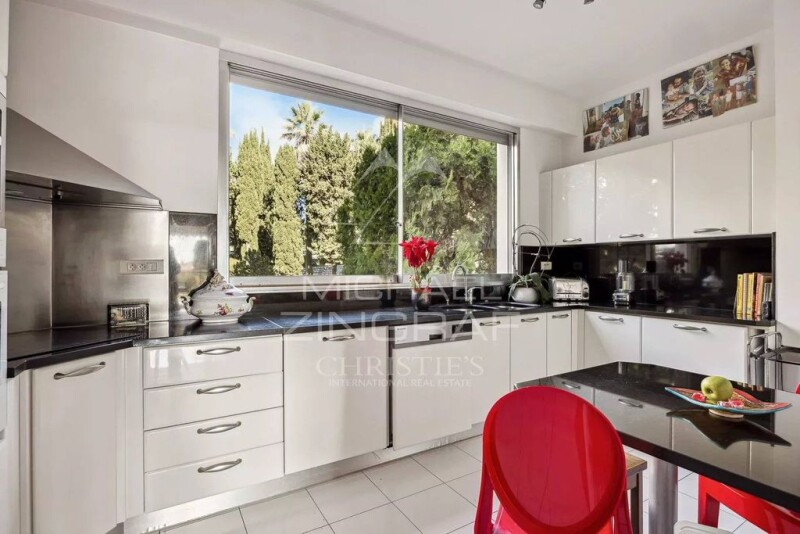 Michaël Zingraf Real Estate Nice presents: In the beautiful Les Jardins de Cemenelum residence in Cimiez, this 85 sqm apartment comprises an entrance, a large living room opening onto a 15 sqm terrace, a separate and fully equipped kitchen, two bedrooms, and a shower room with WC. The apartment enjoys a south-facing exposure with an unobstructed view of the garden and the pond. The secured residence features landscaped gardens and is ideally located close to shops, schools, and public transportation. It also offers a concierge service. Sold with a cellar, there's also a possibility to purchase a parking space separately. État des risques et pollution: réalisé (null).
