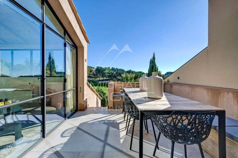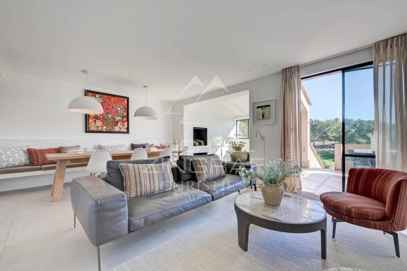 In the green setting of the prestigious Golf International de Frégate, discover this magnificent exceptional house of 132 m², entirely reinvented by an architect to combine refinement and functionality. This unique property offers you a privileged living environment, enhanced by high-end services within the estate with access to the golf course, tennis courts, hotel swimming pools, gourmet restaurants, as well as a 24-hour security service. On three levels, let yourself be seduced by a large living/dining room bathed in light and access to a terrace and a superb sea view, a fully equipped high-end open kitchen. The four sumptuous master suites, two of which open onto a sunny terrace, each with its own private bathroom, offer absolute comfort and preserved privacy. Outside, an elegant landscaped garden completes this idyllic setting, inviting tranquility and contemplation. Between prestige, serenity and preserved nature, this house represents a rare opportunity for lovers of the art of living and beautiful properties. An exclusive haven of peace, where every detail has been thought of to enhance your daily life. This property is subject to the status of co-ownership. Average annual amount of the share of current charges: €4,194.