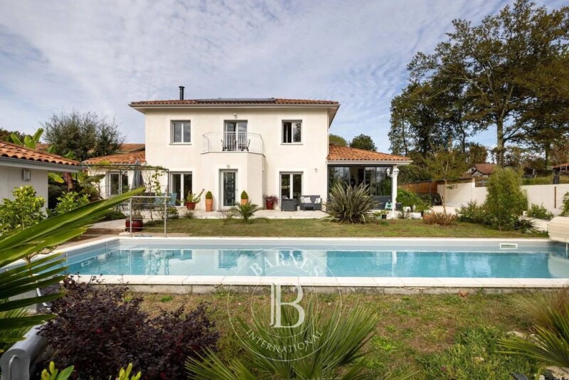 Nestled in a peaceful residential enclave, this exquisite 160 m² home, newly completed in 2024, showcases premium construction, a thoughtful layout, and impeccable finishes. Move-in ready with no work required. On the ground floor, the spacious living area seamlessly combines a lounge, dining room, and open-plan kitchen, bathed in natural light from an adjoining veranda. This level also features a bedroom with an en-suite bathroom for added convenience. Upstairs, a landing with a dedicated office space leads to two bedrooms, each boasting a private shower room. An external staircase offers independent access to this floor. The 962 m² landscaped garden is fully enclosed, adorned with lush greenery and vibrant flowers. It includes a terrace, heated swimming pool, and a stylish pool house, along with a technical room and a carport. Prime Location: ✔ All amenities within 2 km ✔ Dax TGV station – 10 min ✔ Biarritz Airport – 40 min ✔ Hossegor & ocean beaches – 30 min.