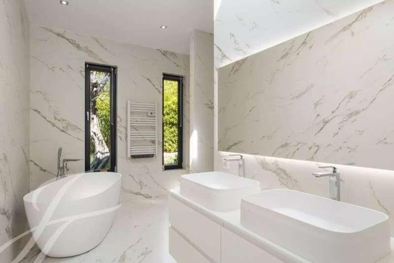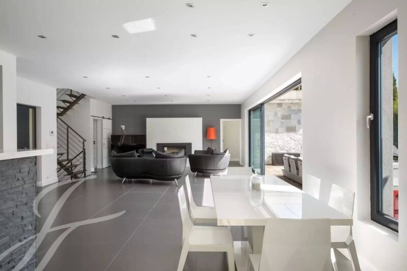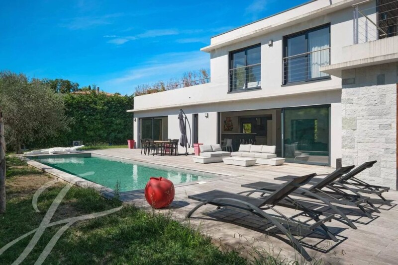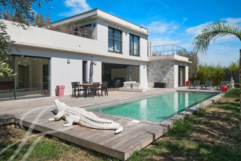 Welcome to this recent contemporary villa of around 250 sq.m, located in a secure estate in a highly sought-after area, close to the Mougins school and within walking distance of all amenities. Set in a 1,116 sq.m plot with swimming pool, this residence offers the perfect combination of modernity and comfort. On the ground floor, a welcoming entrance hall leads to a spacious living room with fireplace, a dining room and an open-plan kitchen opening onto a terrace and the pool area. Two suites with dressing rooms and bathrooms complete this level. Upstairs, two en suite bedrooms and a study provide intimate, functional spaces. The large basement can be converted into a cinema room, sports room, games room, sauna, steam room and shower room, with convenient access to the garden and swimming pool. Energy & Climate Class: A / Estimated annual energy costs for standard use: €1,082 to €1,464 (2021). This contemporary villa harmoniously combines luxury, modernity and functionality in a quiet, secure environment. An exceptional opportunity to discover.