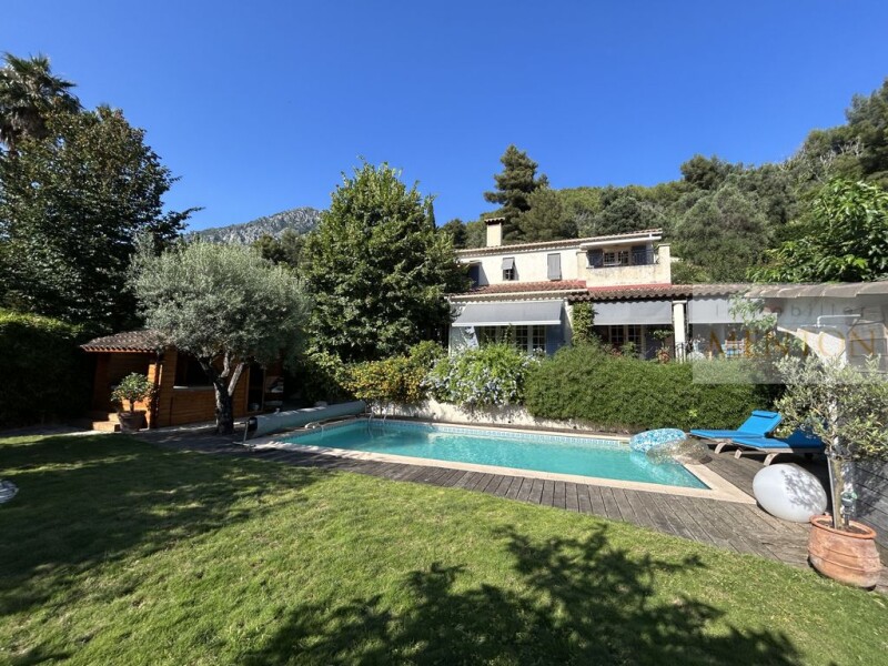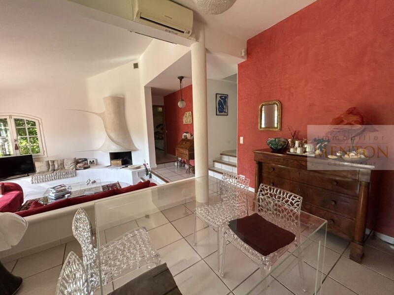 In the town of Menton, beautiful villa with a surface area of 142 m2 Carrez law on pretty planted land of 1000m2 composed of: On the ground floor, an entrance, beautiful living room with fireplace, dining room opening onto a large terrace, a suite master bedroom, a separate kitchen, a guest toilet. On the 1st floor, two bedrooms each with its terrace, and its private bathroom (+ toilet in each) All rooms are air-conditioned, centralized vacuum, water softener, solar panels. On the lower floor, a laundry room, an extra bedroom/office, a pantry + a cellar + storage space. You will be seduced by this haven of peace, this magnificent garden planted with Mediterranean species, its functional summer kitchen (Griddle and professional gas pizza oven), the absence of overlooked, the south-west exposure, as well as calm because it is a secure area. You will also enjoy a beautiful swimming pool (8x4) treated with automated salt, as well as a jacuzzi and a sauna for guaranteed relaxation! For parking, you will have a closed garage (5.60 x 2.70 m with mezzanine) as well as two private parking spaces, protected by an awning. Come and discover this magnificent villa!.