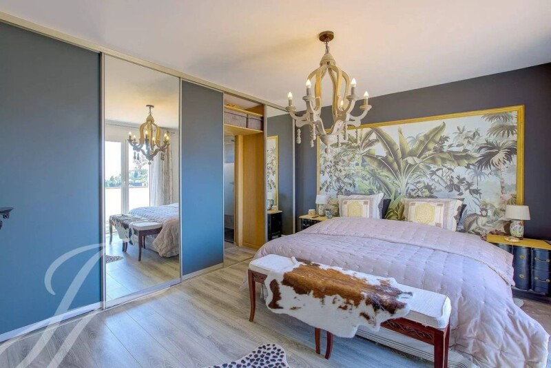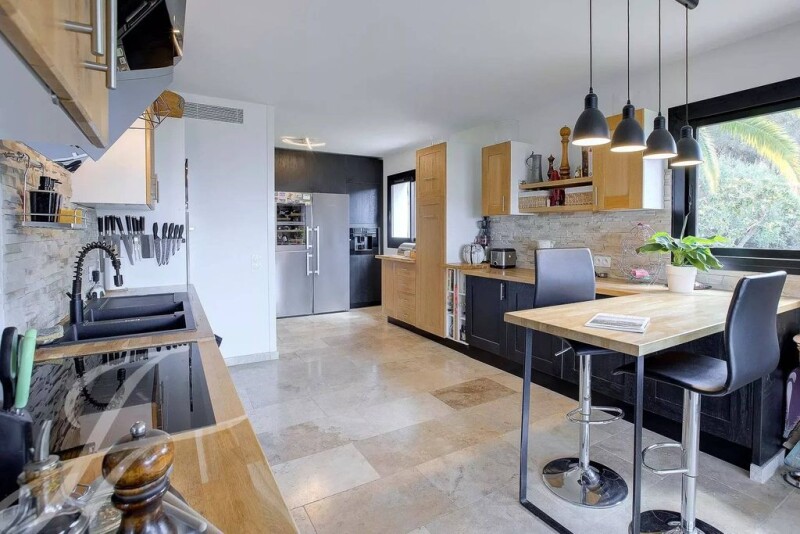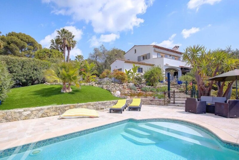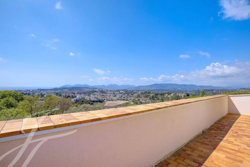 In a residential area of Mougins and near Le Cannet, this fully renovated villa with sea view of approximately 200 sq.m is sized on a landscaped garden of 2237 sq.m with swimming pool. Offering a beautiful living area with fireplace, equipped kitchen, dining room, 3 bedrooms including the Master suite and an office (which can be used as a 4th bedroom). A guest apartment with kitchen and bedroom, a workshop, a garage and a large basement complete this villa.