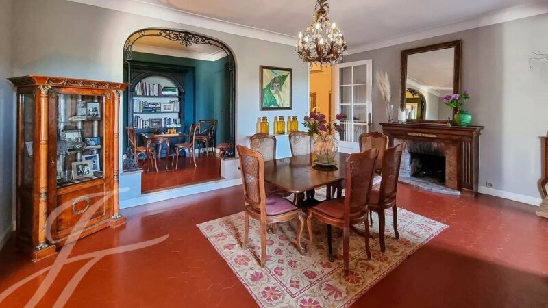 In a residential area of “Le Cannet”, this former residence of a Russian Count is located in a private park of approx.2 885 sq.m, planted with century olive trees, fruit trees and a flowered garden surrounding a magnificent mosaic swimming pool. The living area, with a surface of 377 sq.m, comprises large reception rooms, a large kitchen, 6 bedrooms, an independent studio flat and also two guest houses that can welcome up to 15/20 persons in bedding situation and in total comfort ! Part of the plot can accommodate a building of approx. 250 sq.m, and can be sold separately.