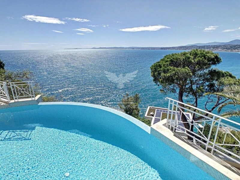 NICE MONT BORON / CAP DE NICE. Villa on 3 levels of 320 m2 with elevator, composed of 4 bedrooms with bathroom, 2 Suites, 1 double living room with office of 80m2, 230 m2 of sunny terraces on several levels, infinity pool, Spa and garages. Breathtaking view of the Baie des Anges, southwest exposure facing the deep blue. Close to all amenities. État des risques et pollution: réalisé (null).