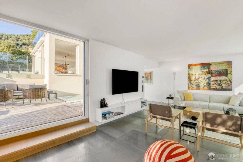 Set in the sought-after heights of Villefranche-sur-Mer, this architect-designed villa offers an exceptional living environment with breathtaking 180 degree views of the Mediterranean Sea. Meticulously renovated to the highest standards, it combines contemporary elegance with absolute comfort in a serene and preserved setting. From the moment you enter, you'll be captivated by the villa's generous spaces and abundant natural light. The expansive living room, bathed in sunlight through its large glass doors, opens onto a terrace featuring a jacuzzi, inviting you to relax while enjoying the stunning panoramic views. The modern, fully equipped open-plan kitchen extends into a welcoming dining area, also leading out to a terrace. The villa boasts five spacious bedrooms, including a luxurious master suite with a private bathroom. Each bedroom has been designed to provide comfort and privacy, making it ideal for family living or hosting guests. Outside, a true haven of peace awaits you: a magnificent infinity pool, surrounded by an expansive teak deck, overlooks Cap Ferrat and the Bay of Villefranche. The secluded outdoor spaces, free from any onlookers, invite you to fully embrace the relaxed Mediterranean lifestyle. This exceptional villa embodies Mediterranean luxury at its finest, blending sophisticated design, tranquility, and one of the most stunning sea views in the area.