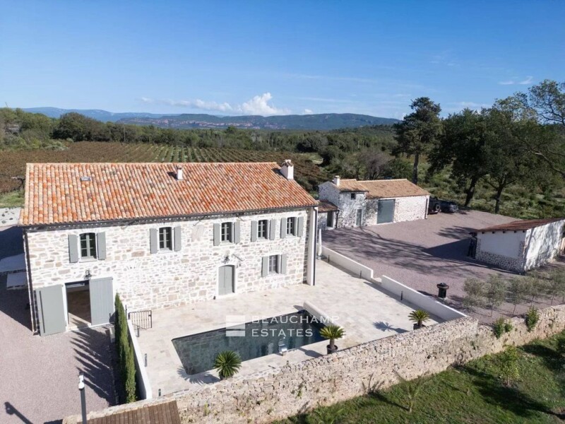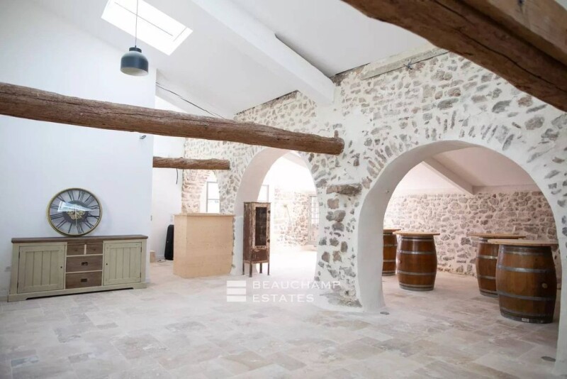 Discover an exceptional property where timeless elegance blends harmoniously with modern comfort. Nestled in the heart of more than 23 hectares, this sumptuous 18th century Provencal residence, shrouded in legend, offers a unique living environment. Entirely restored with meticulous care, it combines noble materials, authentic charm and high-end services. As soon as you arrive, a majestic wrought iron gate opens onto a path lined with vineyards and breathtaking landscapes. The Maison de Maître, magnificently restored, reveals generous volumes and a warm atmosphere. The ground floor is organized around a convivial kitchen, the true heart of the house, where family and friends meet to share unique moments. Its central island and its spacious layout make it a central living space, conducive to conviviality and exchanges. Upstairs, a living room bathed in light, with a cathedral ceiling and exposed beams, invites you to relax. A master suite with dressing room and bathroom, as well as two bedrooms, make up a harmonious family space. On the top floor, two additional bedrooms, ideal for accommodating family or friends, are added to a spacious games room, offering a fun and versatile space for young and old. Outside, a private salt pool and vast terraces offer breathtaking panoramas of the vineyards and the estate. For moments of absolute well-being, three jacuzzis are at your disposal, adding a touch of luxury and relaxation to everyday life. Three independent apartments, each equipped in a contemporary way, can accommodate guests or guests, and a 120 m² stone annex, ideal for organizing events or receptions, further enriches the possibilities. The estate covers 9 hectares of AOP and IGP vines, with the possibility of planting an additional 9 hectares to expand production. In addition, 10 concrete vats, completely renovated, demonstrate the excellent wine-growing potential of the property. Agricultural land and orchards complete this idyllic setting, offering a unique living space of its kind. To guarantee absolute tranquility, the property is equipped with a state-of-the-art security system, active 24 hours a day, including an efficient camera system and complete surveillance of the estate. With its multiple living spaces and exceptional amenities, this property lends itself to numerous projects: family residence, hospitality activity or wine growing. A true Provencal jewel, where every detail embodies the art of living in complete serenity and refinement. Seize this rare opportunity to acquire an exclusive haven of peace. Energy class : D - Climat class : B / estimated annual costs for standard use : between 670€ and 970€ (ref year 2023). Information on the risk to which this property is exposed is available on the Geohazards website : www.georisques.gouv.fr.
