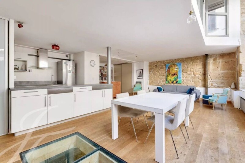 Paris 2 - Place des Victoires / Bourse Located in the heart of the 2nd arrondissement, this triplex apartment of 125 m² Carrez (158 m² total floor area) offers a unique and functional living space. The apartment is composed as follows: First level (on the ground floor ): - A spacious and bright living area with an open kitchen, - A shower room with WC. Second level: - A master suite with bathroom, - Two children's bedrooms with borrowed light. Basement: - Two vaulted ceiling cellars, ideal for creating a TV area, - A laundry room. Liberal professions are permitted. Ideally located between the vibrant neighborhoods of Montorgueil and Sentier, with immediate access to shops and numerous restaurants.