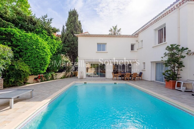 For sale in the sought-after neighborhood of Saint-Giniez, 8th arrondissement of Marseille: family villa with 5 bedrooms, garden, and pool. This spacious house of approximately 220 sqm offers a peaceful and comfortable living environment, ideal for a family. On the ground floor, you will discover a bright double living room comprising a cozy lounge, a welcoming dining area, and a separate fully equipped kitchen. A bedroom, a modern shower room, and a bathroom complete this floor. A practical laundry room adds a touch of functionality to this living space. Upstairs, you will find 4 comfortable bedrooms, providing everyone with their private space, as well as an additional shower room for more comfort and convenience. The exterior of the house is equally attractive with its refreshing pool and sunny relaxation areas, perfect for enjoying beautiful days in complete tranquility. Additionally, the property includes 5 parking spaces, two of which are covered, ensuring convenient and secure access to your vehicles. This house harmoniously combines interior comfort, pleasant outdoor spaces, and daily functionality.