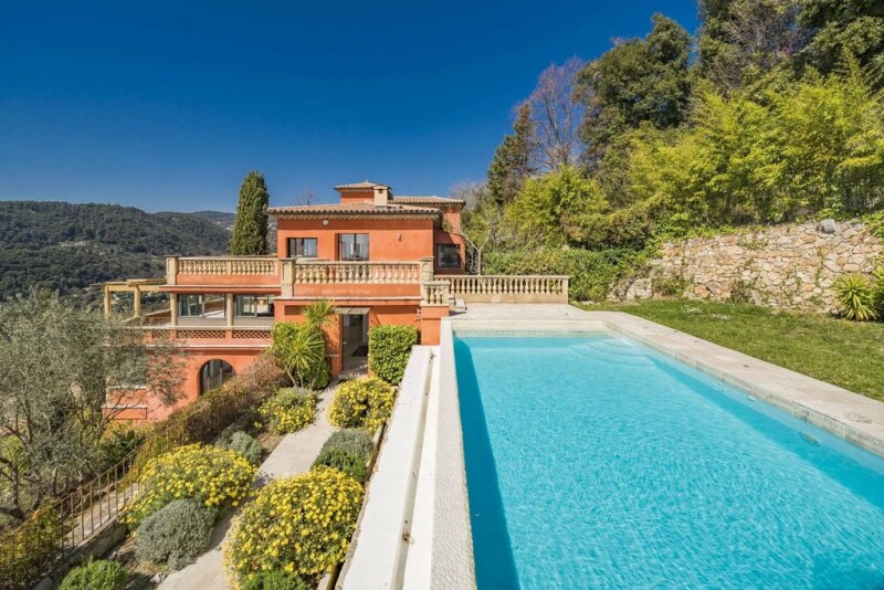 From our Prestige Collection. 6 Bedroom house in Grasse, in a secure domaine This 400 m2 contemporary villa (6 bedrooms, including one master suite and an independent apartment ). It has a panoramic view over the Mediterranean sea and the mountains together with a bird's-eye view of the town of Grasse. Located in a gated, secure estate, this splendid villa spans around 400 m2 on 4 levels served by a lift, and is built on a fully landscaped plot of around 1,500 m2. Each room and the terraces offer panoramic views of the hills, the Esterel and the sea. The villa comprises a beautiful entrance hall leading to a large, bright living room with an open, fully-equipped kitchen. There is a master bedroom with dressing room, open-plan bathroom and private terrace, and 4 further en suite bedrooms, one of which is independent. There is also a 2-room apartment. Superb landscaped grounds with infinity pool, Jacuzzi, pool house with hammam and summer kitchen, petanque area and 100 m2 patio with trees. Outbuildings include a laundry room, wine cellar, garage for several vehicles and outdoor parking space. The infinity pool (9 m x 4.50 m) is equipped with a area for sunbathing and a waterfall feature into a stonework wall. A Jacuzzi and a hammam with ergonomic seats complete this area for relaxation. These levels can be accessed by both: A majestic marble staircase surrounded by dry stone walls; and a panoramic eight-person lift. Garage - The 90 m2 underground garage has a 5/6-car capacity and is closed by a motorised sliding door. The panoramic lift also leads to the garage. The property benefits from an automatic watering system. It is situated only a few minutes from the well known perfume capital of Provence - Grasse - and all its conveniences, and close to the beautiful hill village of Cabris, which has numerous restaurants and a golf course. Also nearby are Mougins and Valbonne, and the renowned technopole of Sophia Antipolis. The beaches of Cannes can be reached in 25 minutes and Nice International airport is only 35 minutes drive. Contact us today for more details.