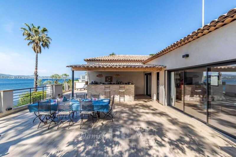 This delightful about 200 sqm property set in a 1205 sqm plot benefits from direct access to the sea and a little private beach enjoying a view of Sainte-Maxime and the Gulf. Dating from the mid 1970’s, it includes a living/reception room with a fireplace bathed in sunshine thanks to wide patio windows, an open kitchen, a storage room and a bedroom with a shower room. Downstairs are three further bedrooms each with a shower room and direct access to a terrace facing the Mediterranean sea. Private boat garage 10m x 4m and private stairs lead down to the beach. A unique opportunity.