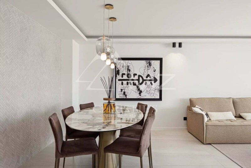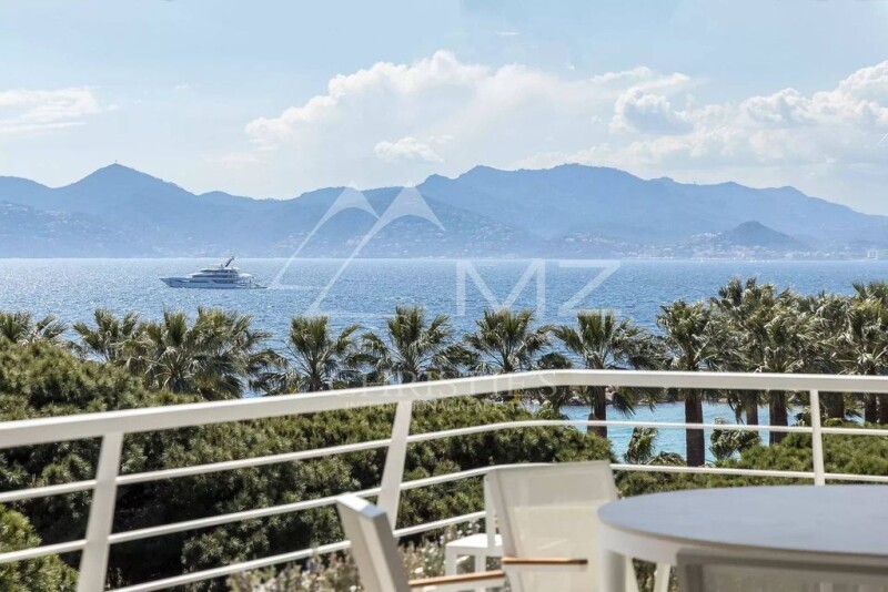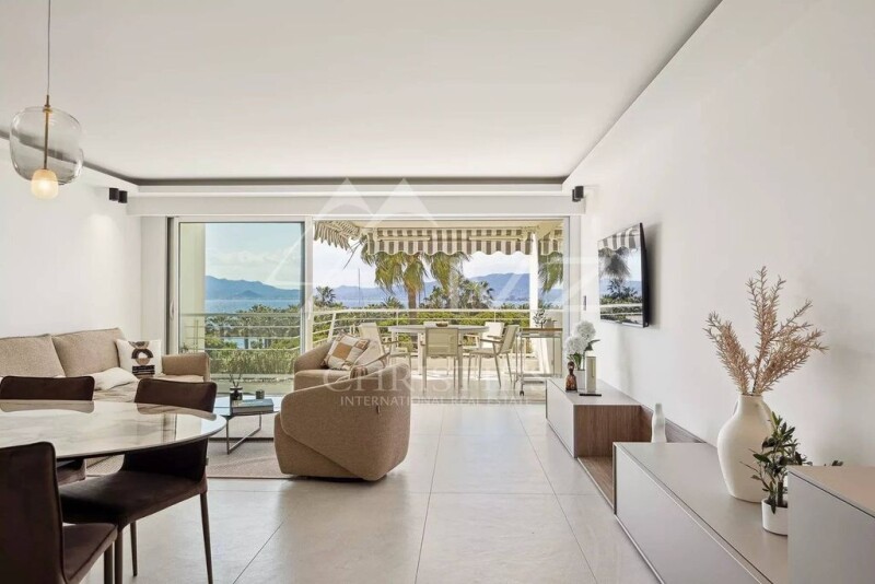 Cannes Croisette - 4p fully renovated - Panoramic sea view. Crossing flat of 110m2, located on the 6th and penultimate floor of a residence located on the Croisette and benefiting from a panoramic view on the sea, the bay of Cannes and the hills of the Esterel. It consists of an entrance hall, a living/dining room with open kitchen opening onto a 11m2 terrace and three bedrooms en suite. This flat is fully renovated with luxurious fittings and sold furnished.