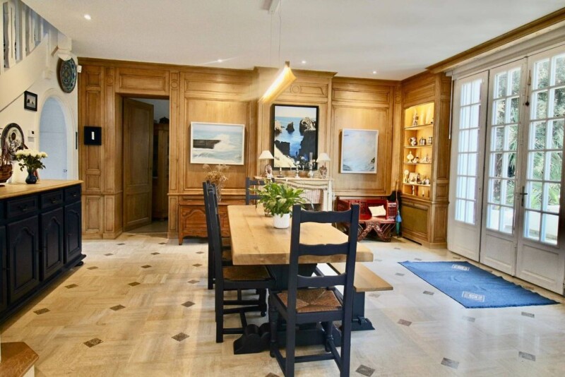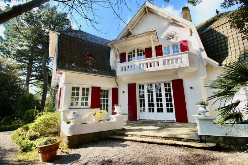 ‘Nestling in a green setting just a stone's throw from the ocean, this character villa, dating from 1930, combines old-world charm with contemporary comfort. Completely renovated in 2014 using the finest materials, it has been designed for a peaceful lifestyle. The reception areas, enhanced by a period fireplace and beautiful wood panelling, invite you to enjoy moments of conviviality, while the 3 spacious bedrooms (with the possibility of a 4th) ensure absolute comfort. Its private lift adds a touch of practicality and modernity. An independent studio, a garage and 1,246 m2 of beautifully landscaped grounds complete this exceptional property.