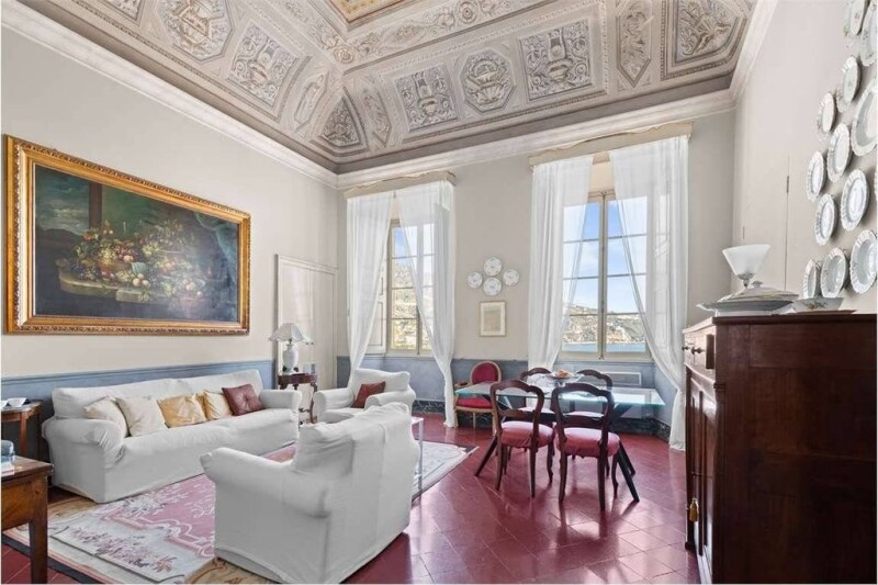 Luxury Apartment in Eighteenth Century Historic Building in Menton Located in the heart of Menton, the pearl of the French Riviera, renowned for its mild climate, lush gardens, and charming French atmosphere, this exclusive apartment offers a unique combination of historic elegance and modern comfort. Situated within a building from the 18th century protected by the Fine Arts, the property retains its original frescoed ceilings, art masterpieces that exude timeless charm. With a living area of 115 sqm, the apartment is a refuge of style and beauty. Description of the interior spaces Entrance into a hallway, harmoniously leading to the main rooms. Spacious and bright living room with frescoed vaulted ceilings, enhanced by a double exposure: on one side a magnificent view of Menton beach, on the other a direct view of the majestic Basilica of St. Michael the Archangel, the city's symbol. Two large bedrooms, ideal for maximum comfort. A small bedroom, perfect as a study or guest room. Functional and discreet kitchenette. Two bathrooms, one with a laundry area. Every detail of this residence tells its story, while the large windows let in natural light that enhances the refined interior decorations. Location and context The property is just steps away from Menton's most iconic attractions, such as the Biovès gardens and the picturesque streets of the historic center, offering an unparalleled quality of life. The proximity to the sea and the view of the Basilica make this property an unmissable opportunity for those seeking an exclusive home immersed in history and beauty.