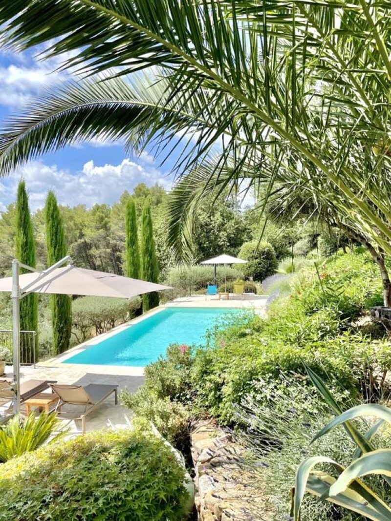 Not far situated from the village of Lorgues you will find this great house offering you all its luxury. Just sit back and relax on the terrace to enjoy all year round its spectacular view. You enter the property through an electric gate. The Villa offers you a nice entrance, open modern kitchen with dining area and a nice living room with open fireplace and painted ceiling beams added character and style. Main bedroom on the ground floor with bathroom and toilette and a second bedroom with shower. A laundry room and a large electric covered terrace. On the ground level, garden level, you will find a separate apartment with equipped kitchen/living and a bedroom with shower room. A large second covered terrace where you can enjoy the coolness in summertime. A beautiful landscaped tropical garden which will take your breath away. The salt water infinity swimming pool measures 11 x 5 m and offers delightful hillside views. The rest of the garden has nice terraces and the overall land size is approximately 5000m2, total privacy guaranteed. Contact us today to find out more.