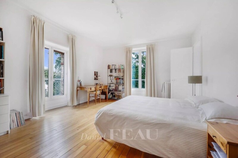 This magnificent property dating from the 1920s is located 300 metres from leafy Ibis Park, and an 8-minute walk from the station. Set in 2591 sqm of landscaped grounds, it offers 528 sqm of floor space and 375 sqm of living space as defined by the Carrez Law including an entrance hall, a double living/reception room with a fireplace, a drawing room/library, a bright kitchen opening onto a west-facing 40 sqm terrace, a bedroom or study with a shower room and wc, and a master bedroom with an adjacent bathroom, a dressing room and a wc. Upstairs are a sitting room featuring a bow window, five bedrooms (two with bath/shower rooms and a wc, one with an adjacent shower room), a dressing room and a separate wc. The fully fitted 100 sqm garden level comprises a relaxation area with a heated 8.50 x 4 metre swimming pool directly accessing a terrace and the garden, a sauna, and a shower room with a wc. With a self-contained 38 sqm studio apartment accessing the garden, a utility room and a storage room. The basement comprises a wine cellar, and two 20 and 22 sqm garages. In the immediate vicinity of the schools and the shops. État des risques et pollution: réalisé (2023-11-30).