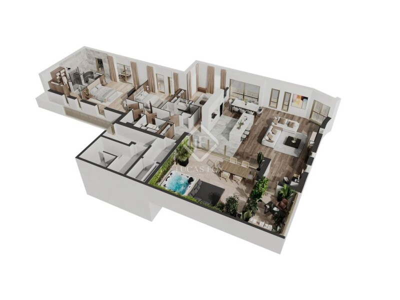 Lucas Fox International Properties, located in Les Arceaux, in an elegant and intimate residence of 7 lots scheduled for delivery at the end of 2026, 169 m² dual-aspect apartment. Located on the 3rd and last floor, this dual-aspect apartment consists of a 76 m² living space with open kitchen, 3 bedrooms including a suite with bathroom and toilet, a shower room, a storeroom and separate toilet. This apartment benefits from a beautiful ceiling height of 2.70 m. The outdoor space extends over 80 m² with a main terrace of 47 m² facing southwest bordering the living space, part of which is covered to enjoy it all year round. There is also a second terrace of 24 m² adjoining the 3 bedrooms, as well as a balcony of 9 m² at the level of the master suite. High-quality and refined services in a secure residence with a lift. Two covered parking spaces complete the set. Obtain the complete file and more information from your dedicated agent, Fanny LE CANN, Commercial Agent - RSAC n° 929 430 114 Montpellier. Information on the risks to which this property is exposed is available on the Géorisques website: www.georisques.gouv.fr.