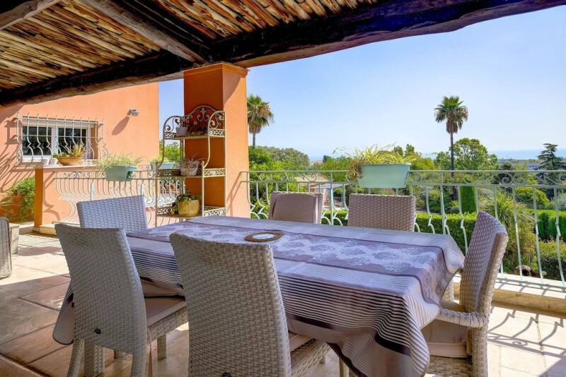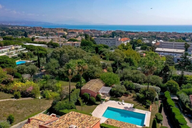 In ANTIBES, in a residential area, spacious villa with panoramic sea view, built on 2174 m² of flat, south-facing land, set back from a small road, in absolute peace and quiet, with swimming pool and pool house, bowling green, outbuilding (guest house). The villa comprises on the ground floor a large garage able to accommodate at least 4 vehicles and motorcycles, a main entrance with a beautiful hall giving access to an independent apartment on the ground floor with living room, kitchen, 2 bedrooms, shower room with wc, to access the upper level a comfortable staircase leading to a large living-dining room with fireplace, a lovely open-plan fitted kitchen, all opening onto a lovely terrace with a panoramic sea view, a 2 nd terrace with barbecue on a veranda with the same sea view, a large laundry room, 3 bedrooms, 2 bathrooms, and upstairs a bedroom or office. In the guest house near the pool, a living room with open kitchen, 2 bedrooms and a bathroom. A must-see! Translated with DeepL.com (free version).
