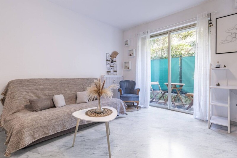 A short walk from the port and the famous beaches of Nice, located in the sought-after Reserve area, discover this large studio located on the ground floor of a high-standing building, nestled within a highly renowned private and secure estate. This property stands out with a welcoming entrance, a bright living room, a fully equipped independent kitchen, a modern shower room, and separate toilets, all opening onto an attractive terrace. Also enjoy a cellar. The quiet neighborhood ensures easy parking in the park. An ideal option for a first investment or real estate purchase.