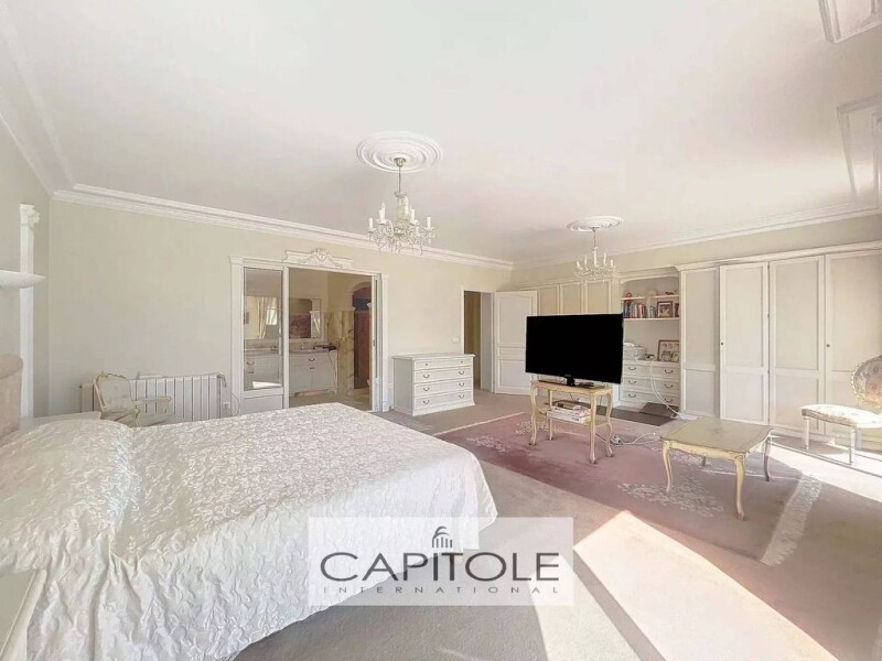 For sale a stunning family villa of approximately 348 sqm, nestled in a tranquil setting with breathtaking panoramic views extending to the sea. Ideally located on the outskirts of Super Cannes, this bright villa is in excellent condition. It features 5 bedrooms, an entrance leading to a spacious double living room, a dining area, and a semi-open kitchen, all opening onto a large terrace. The property also includes two independent studios, a magnificent infinity pool, several green spaces, a large garage of 30.61 sqm, and numerous outdoor parking spaces for over 6 cars. A rare opportunity to live in an exceptional setting! Ref :CT8338VM.