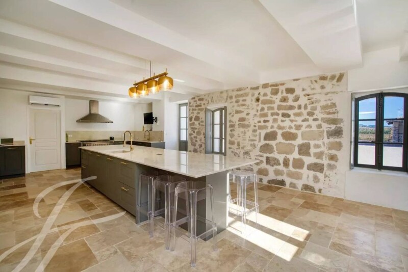 Discover a unique estate nestled in the heart of over 23 hectares of land, including 9 hectares of PDO vines (with the possibility of planting a further 9 hectares) and 3 hectares of PGI vines, enhanced by a fully renovated 18th-century Provencal residence. Located just 30 minutes from Sainte-Maxime, this property combines authentic charm with modern amenities in an enchanting setting. The carefully restored Maison de Maître combines the nobility of exposed stonework and ancient beams with contemporary finishes. The first floor hosts a convivial kitchen with a central island, ideal for sharing warm moments, while the first floor reveals a majestic living room with cathedral ceiling and natural beams. A master suite with dressing room and bathroom, as well as two bedrooms and a shower room complete this exceptional space. The converted attic offers versatile space, perfect for a playroom, workshop or additional sleeping accommodation. Outside, an atmosphere conducive to relaxation awaits you: two private swimming pools, three Jacuzzis, vast terraces and a bubble room invite contemplation. The estate also includes three self-contained apartments, each with a living room and fully-equipped kitchen, totaling eight bedrooms, ideal for hosting guests or developing a lodging business. A 120 m² stone annex houses a vast reception room, perfect for organizing weddings, seminars or festive events in a warm, authentic atmosphere. In addition, the property features a janitor's apartment, a garage, a carport, a shed, a store area and 10 new concrete vats, offering unique opportunities for wine enthusiasts and professionals alike. This exceptional estate, imbued with character and elegance, is much more than a residence: it's a true invitation to the Provencal art of living, where nature, serenity and infinite possibilities come together.