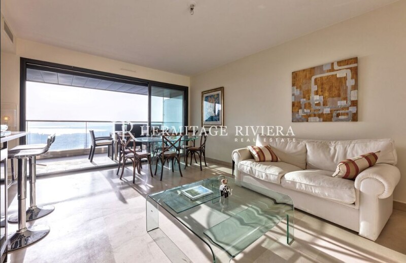 This bright, lateral apartment, located in a modern and well-maintained building, offers a comfortable and luminous living space. The apartment features: - a spacious living room with a fully equipped open-plan kitchen, opening onto a beautiful sunny terrace of 27 m² - a master bedroom with direct access to the terrace, perfect for relaxation - two additional bedrooms, each with built-in wardrobes providing convenient storage - a bathroom, a shower room with a toilet, and a guest toilet The property is complemented by a closed garage and a storage cellar. The building, with its modern architecture, is meticulously maintained and offers high-end amenities, including a swimming pool, landscaped greenery, and concierge services, ensuring comfort and security.