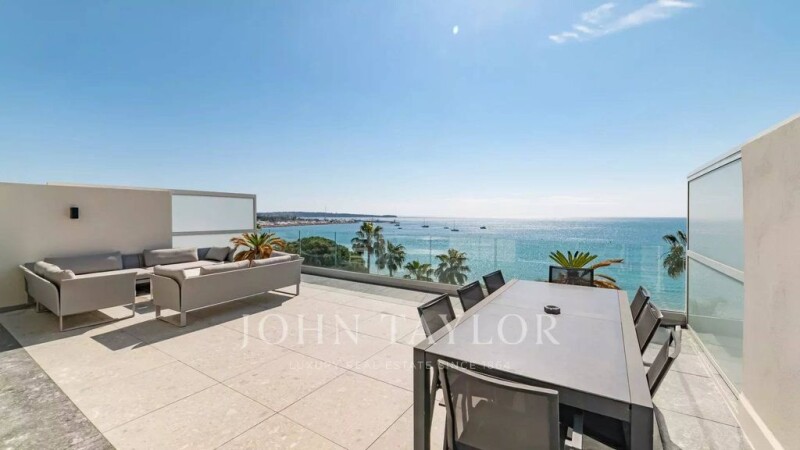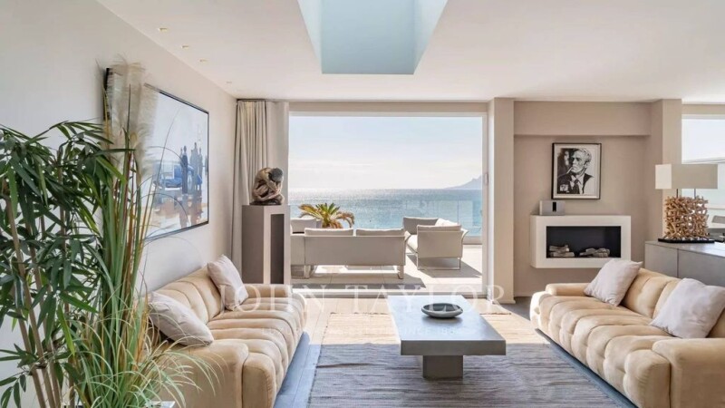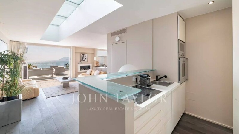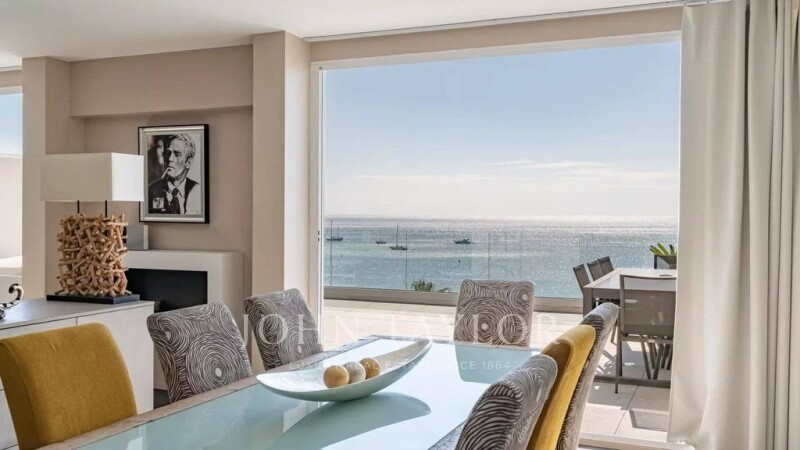EXCLUSIVE: Dreamlike sea view for this very rare, fully renovated and air-conditioned penthouse, located on the 5th and top floor of a residence between the Carlton and Martinez hotels. It offers a 95 m² "loi Carrez" surface area and a magnificent 48 m² terrace, ideal for relaxing or enjoying meals with numerous guests. Layout: living and dining room with open-plan kitchen, master suite with en suite shower room and toilet, second bedroom, shower room, separate toilet. Optional: basement parking available nearby. État des risques et pollution: réalisé (null).