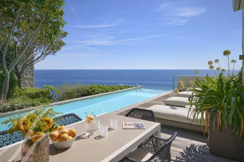 This villa-apartment of mostly 400 sq.m. is located in one of the most beautiful and elegant residences of the Riviera. On the seafront with private access to the sea by funicular, with a 24/7 guard service, magnificent gardens and a very nicve swimming pool for residents. Spread over 3 levels, the villa has an independent entrance, a private swimming pool and a lift serving all floors. It offers a very high quality of finishing combined with the beautiful sea view from all the levels. It is composed of an entrance hall, a double living room opening onto spacious terraces facing the sea, a kitchen and a dining room, 4 bedrooms each with its own bathroom and a private swimming pool with a summer kitchen, dining area and outdoor lounge. A laundry room. A double garage and a parking for 2 cars. An opportunity not to be missed to become the owner of this magnificent place facing the sea and offering an excellent quality of life...