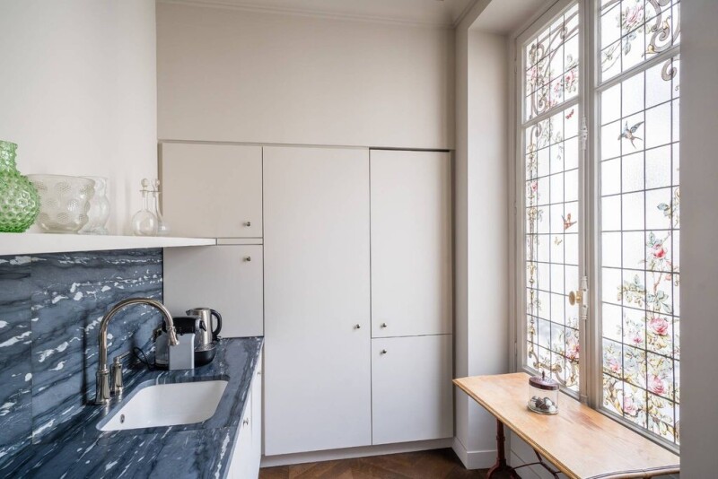 Close to the Concorde, opposite of the Jeu de Paume and the Tuileries Gardens, this superb 201Sqm loi Carrez (208 Sqm floor area) reception apartment is located on the prestigious Rue de Rivoli in a Directoire building dating from 1810. Located on the third floor with elevator in this luxury building, it boasts unobstructed views of the Tuileries gardens, and boasts magnificent volumes thanks to its 3.40-meter high ceilings. The property comprises an entrance gallery, a large reception room with two large windows, followed to its left by a master suite overlooking the garden with an Italian marble bathroom. The spacious living room opens onto a beautiful dining room with fireplace, enjoying superb through-light thanks to decorative stained-glass windows. Finally, a second bedroom with en-suite bathroom also overlooks the Tuileries Gardens, Eiffel Tower, Concorde and Grand Palais. The refinement of this apartment, with its many decorative features (Louis XVI trumeaux, period stained-glass windows, precious marble fireplaces, herringbone parquet flooring) and breathtaking views over historic Paris, give this place exceptional charm. An adjoining spacious cellar completes this rare property.