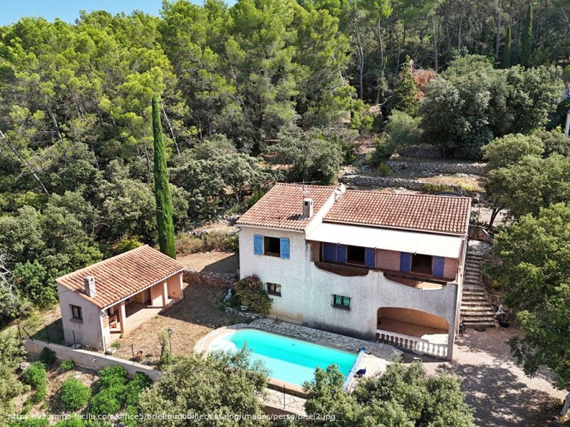Briel et Partners offers you this charming 100 sqm house with a breathtaking view. in a sought-after residential area of LORGUES. Enjoy a large 43 sqm living room opening onto a terrace also accessible from 2 of the 3 bedrooms. The kitchen is open to the living room, adding to the conviviality of the place. The 24 sqm terrace facing south offers a breathtaking view of the Maures massif. The land of approximately 1800 sqm accommodates a swimming pool with pool house, a bowling alley, a garage, a cellar and a laundry room, all in a quiet environment close to the city center. 2 access gates allow you to arrive either on the ground floor at the level of the house, or on the terrace below at the level of the swimming pool and the garage. Some decoration work is to be expected. The most reversible air conditioning.