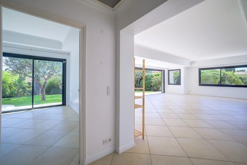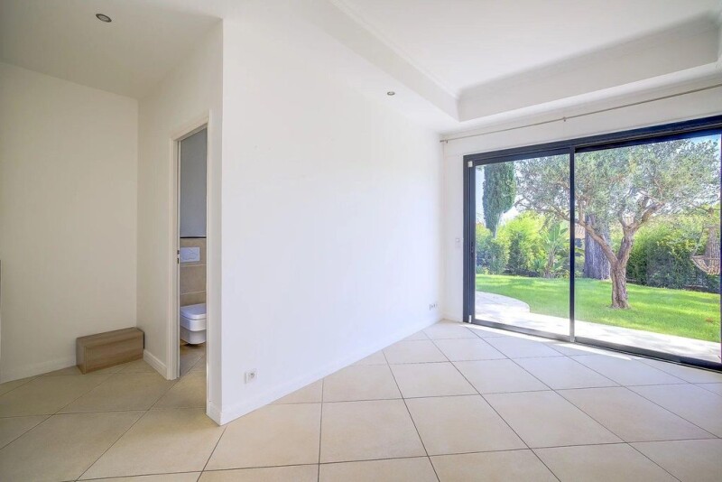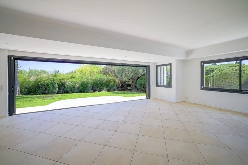 Large and bright single storey villa in the residential area of Mougins, quiet, with easy access and close to all amenities, golf course and International school. With its living area of approximately 163 m2, it is composed as follows: entrance, large living room with bay windows opening onto the garden, open kitchen, laundry room, 3 bedrooms, each with its own bathroom or shower/WC. The house, perfectly equipped - air conditioning, alarm, centralized home automation, etc. - is very easy and pleasant to live. The flat land with approximately 1400 m2 of surface offers on one side, its garden with a multitude of Mediterranean species, pleasantly shaded, and on the other - its swimming pool facing south. Cellar, carport and parking complete the property. The house can be enlarged by approximately 38 m2, subject to acceptance of the project by the town urbanism department. Contact us today to find out more.