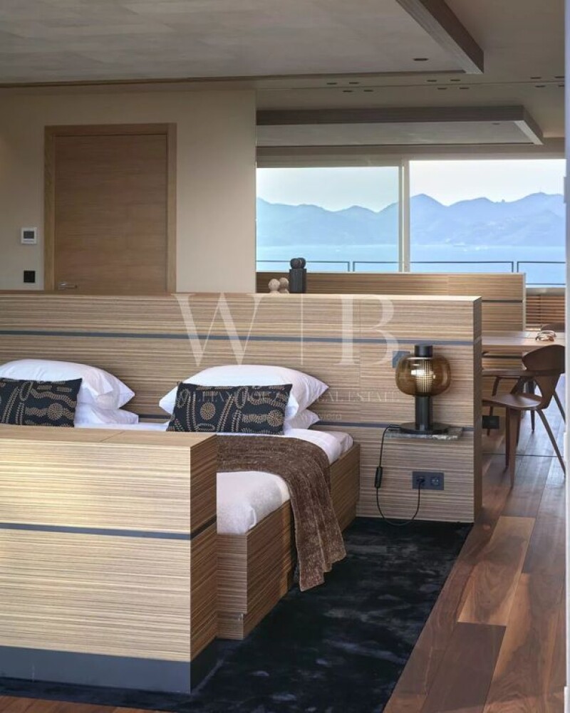 Located in the heart of the residential area of la Californie, in a dominant position, quiet and close to the center, exceptional contemporary villa with +/- 439 m² and enjoying a panoramic view of the sea and the bay of Cannes to the Mountains of Esterel, like a postcard... Built on a flat and meticulously well maintained landscaped plot of +/- 3000 m² with large infinity pool (13X4 meters), the villa designed by a famous architect spread over 2 levels and composed as follows; On the garden level: a huge reception area including a double living room and the dining room, an open kitchen and a separate semi-professional kitchen highly equipped, a large wine cellar, the Master bedroom n°1 with large dressing room and bathroom in suite, a spa area with a gym and a sauna, as well as a laundry room, the technical room and the guest toilets. On the upper level: the entrance hall and 4 large bedrooms (including the Master Bedroom n°2), each with their own bathroom and dressing room in suite all extended by large sunny terraces. South exposition, in a green setting, with remarkable services and finishes, with generous volumes, combining luxury, refinement and high quality materials, in a refined spirit, enjoying an exceptional panorama of the sea and vegetation, this property is like THE signature "of a large house"! "H".