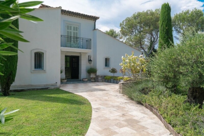 Welcome to this magnificent villa set in the gated and sought-after estate 'Les Parcs de Mougins' with 24/7 security. This beautifully presented family home offers an exceptional living environment. With its generous surface area, this warm and cosy property features 5 bedrooms, including a beautiful master bedroom suite. . The flat grounds surrounding the villa offer superb outdoor space, with a beautiful heated swimming pool and pool house, petanque court, perfect for activities with family or friends. The peaceful, natural environment in which the property is set is simply exceptional, offering total serenity. Accommodation includes - Entrance level: Entrance hall, large living room with fireplace, dining room De Tonge kitchen and back kitchen, master suite with en-suite full bathroom, office, guest toilets. First floor: Bedroom with en-suite bathroom. Garden level: bedroom 3 with en-suite bathroom, direct access to garden and terrace, bedroom 4 with en-suite shower room, direct access to garden and terrace. Bedroom 5 with en-suite shower room and en-suite living room with kitchenette (could be an independent apartment), games room, wine cellar. Under floor heating & cooling, alarm and interphone. Double garage and 5 more parking spaces in the gated property. This villa is the perfect place to entertain family and friends, in a setting that's both refined and intimate. A true haven of peace to discover.