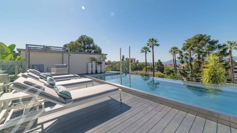 In the highly sought-after Californie area, very close to the city centre, this superb four bedroom apartment of about 250 sq.m is situated in a prestigious estate. The Domaine Californie includes 3 buildings, the villa Araucaria, superb mansion erected in 1925 which was previously part of the Château de Thorenc, entirely refurbished and two additional buildings. The whole, achieved in a contemporary style, enjoys an exceptional quiet environment with a magnificent landscaped park. This apartment is composed of : a vast entrance hall, a living-dining room of 70 sq.m, a kitchen with adjacent storeroom, a laundry, one master suite, three further en suite bedrooms, guest toilet and a wide terrace. A mesmerizing 200 sq.m rooftop terrace is fitted with a summer kitchen and a private pool. This flat has three parking spaces. The estate offers as well a wonderful swimming pool area and a pool house, a Fitness room, caretaker services and remote monitoring.
