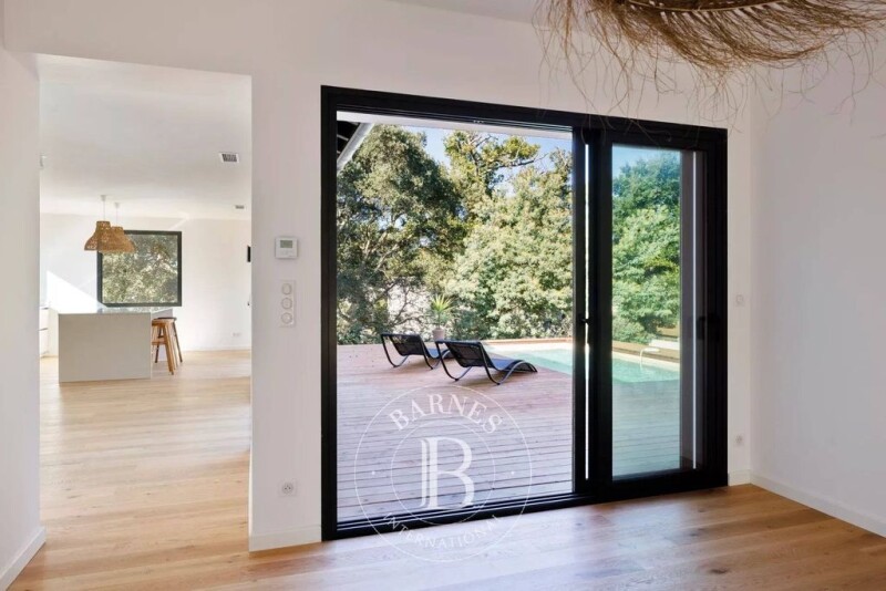 Ideally located at the end of a quiet cul-de-sac near shops and the beach, this charming house was fully renovated in 2024. With a living area of 140 m², the villa features an inviting entrance, a spacious living room opening onto the terrace, a fully equipped eat-in kitchen, a master suite, and three additional bedrooms with a shared bathroom. Set on an 865 m² garden that backs onto a wooded area, this property offers both tranquility and convenience.