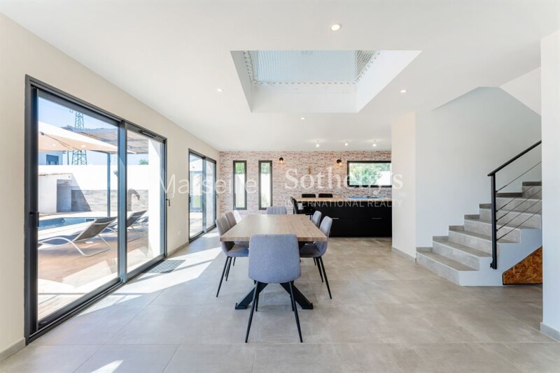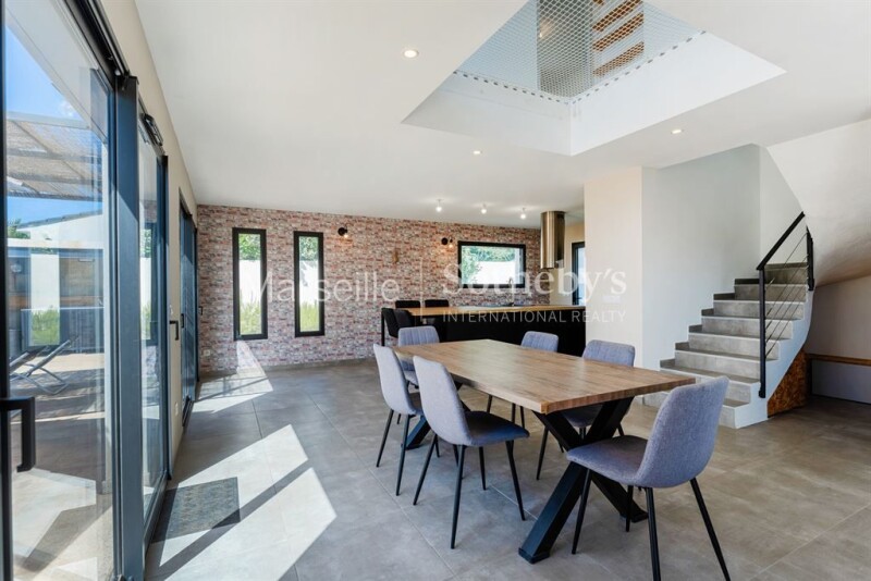 For sale in La Ciotat, a recently built contemporary house of 146 sqm located on a 426 sqm plot in a gated and secure residence. Facing south, it offers a peaceful and sunny living environment. On the first floor, you will find a spacious open-plan living area with a welcoming lounge, a friendly dining room, and a modern open kitchen, a laundry room, and a master suite with an en-suite bathroom. The second floor features 3 other bright and spacious bedrooms, a shower room, and a bathroom. The outdoor space offers a refreshing pool to enjoy sunny days, a pétanque court for relaxing moments with family or friends, as well as 12 solar panels for an eco-friendly home and energy savings.
